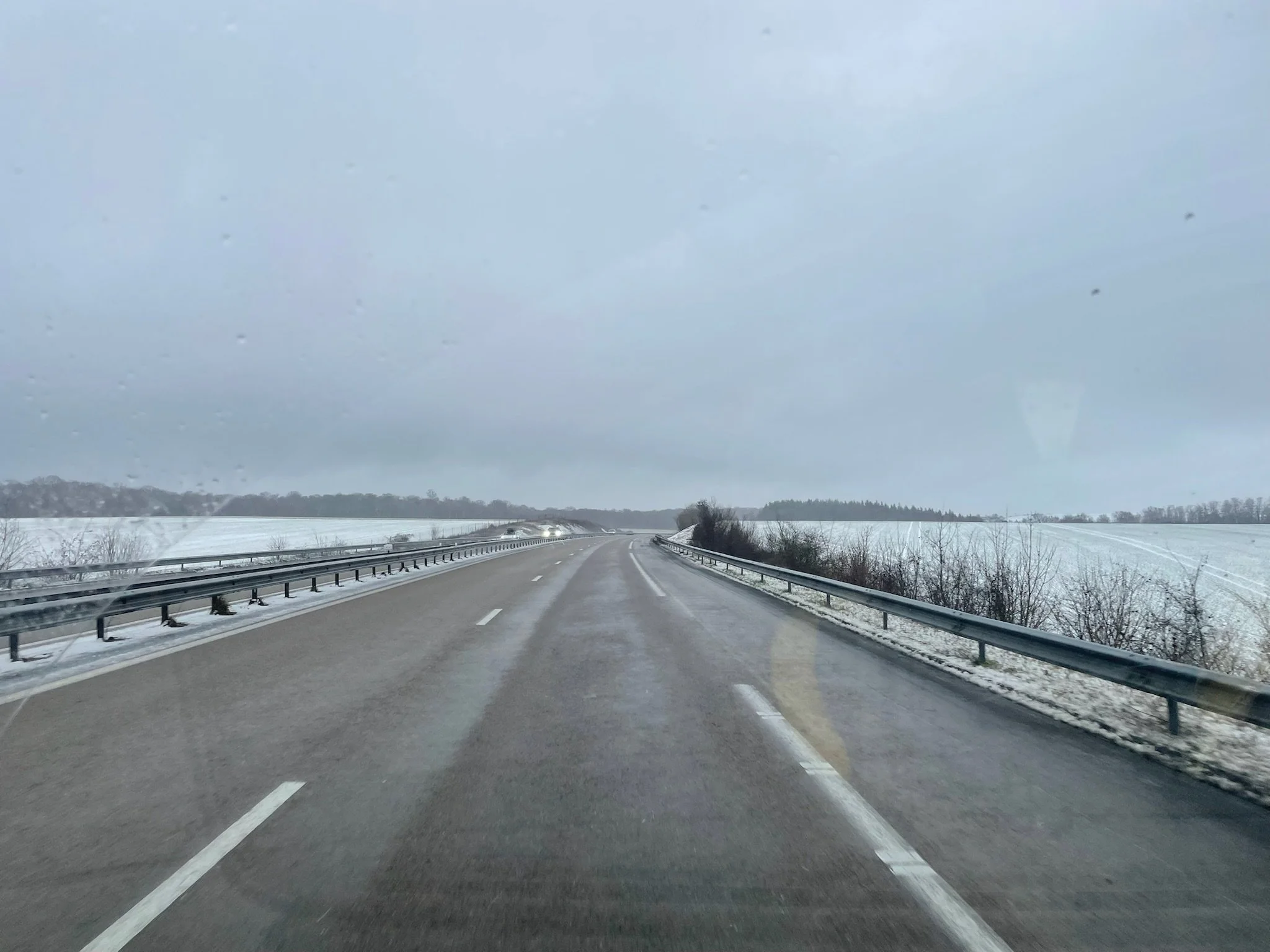We left England in January. This was ambitious. We were experiencing what the weather forecasters were describing as ‘significant rainfall’ but feels more biblical. The roads east from Cornwall to Folkstone were running with water. The Le Shuttle terminal was grey and wet and the wind was doing something purposeful and unpleasant.