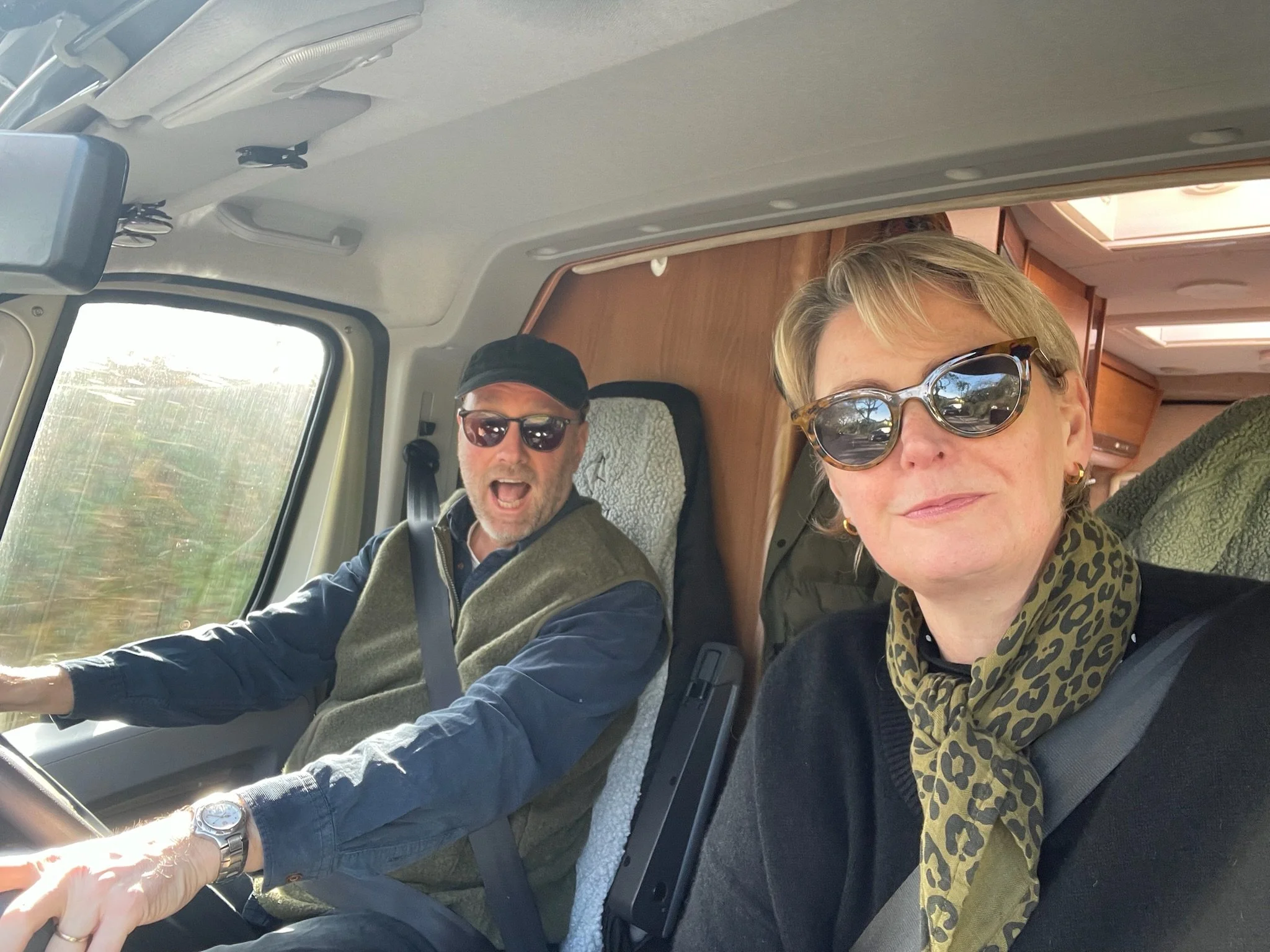 We're Kate and Charlie — mid-fifties, one anxious dog called Huffle, one fifteen-year-old Peugeot Boxer campervan called Brigitte, and absolutely learning as we go. Whether you have a campervan or a motorhome, if you're new to this or thinking about it, come with us.